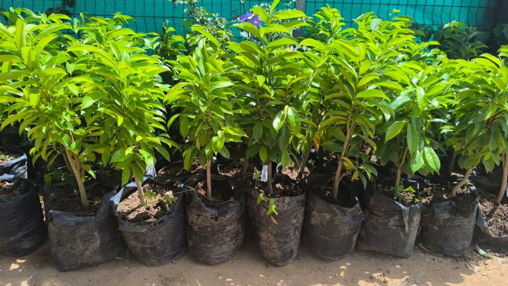 La pépinière d’arbres fruitiers, âgée de quelques mois, contribue non seulement à l’amélioration de l’oxygène et à la création d’ombre, mais aussi à la production de fruits nutritifs pour les espèces vivantes